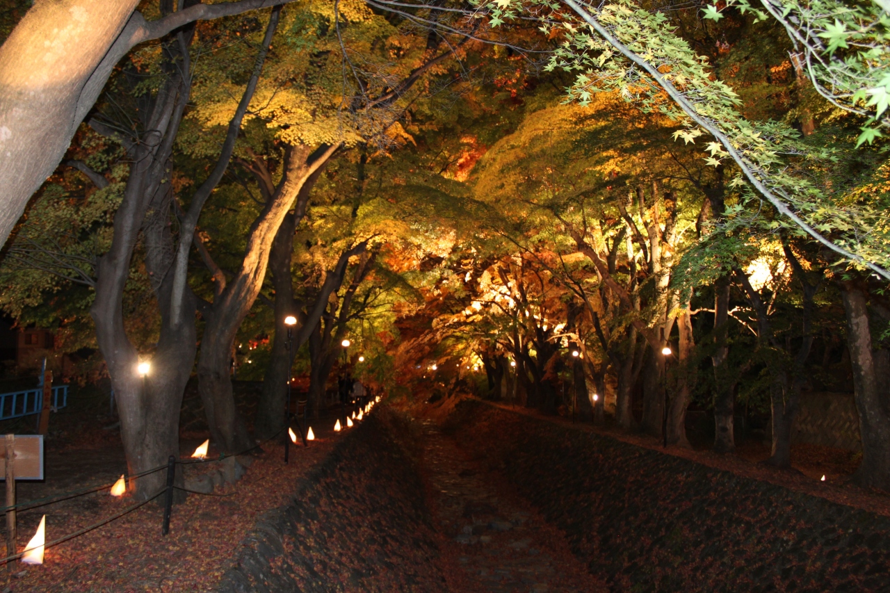 河口湖のモミジ回廊を見に行きました。河口湖は何度も訪れていますが、この催しは初めて。小川沿いのモミジの木立がライトアップされ、幻想的。多くの方がカメラを構えて良い写真撮影に挑戦していました。昼の紅葉ももちろん楽しめますが、夜は又違った雰囲気でロマンチック感も大。気分も盛り上がります。若いカップルでなくても楽しめました。