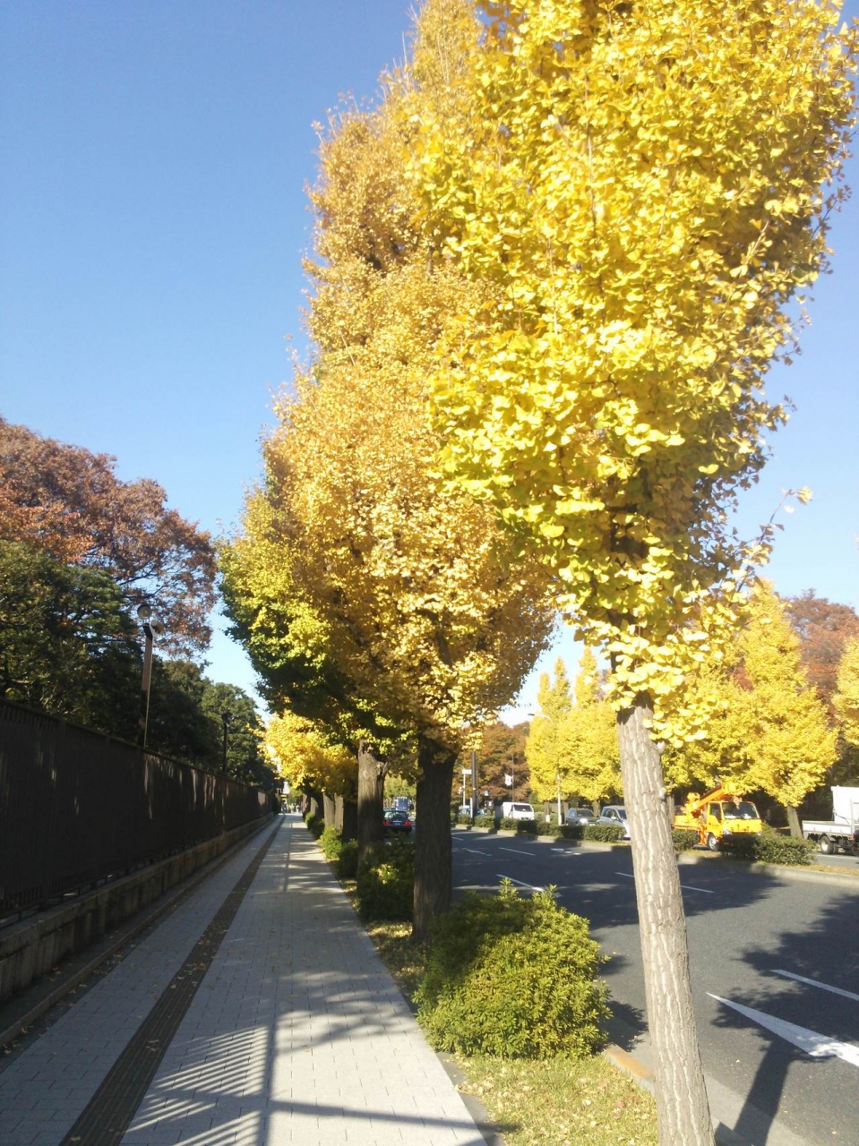 木によってばらつきもありますが、ちょうど今週末あたりから、まっ黄色になりそうです。