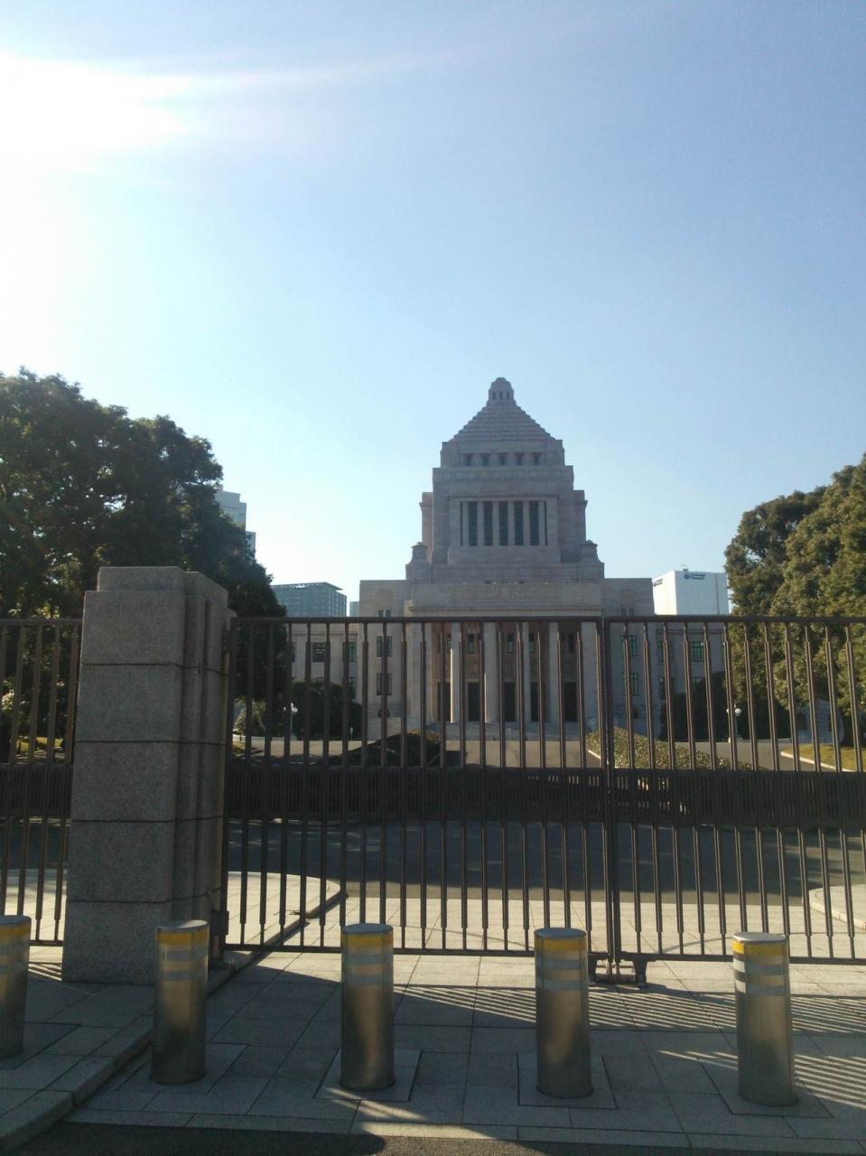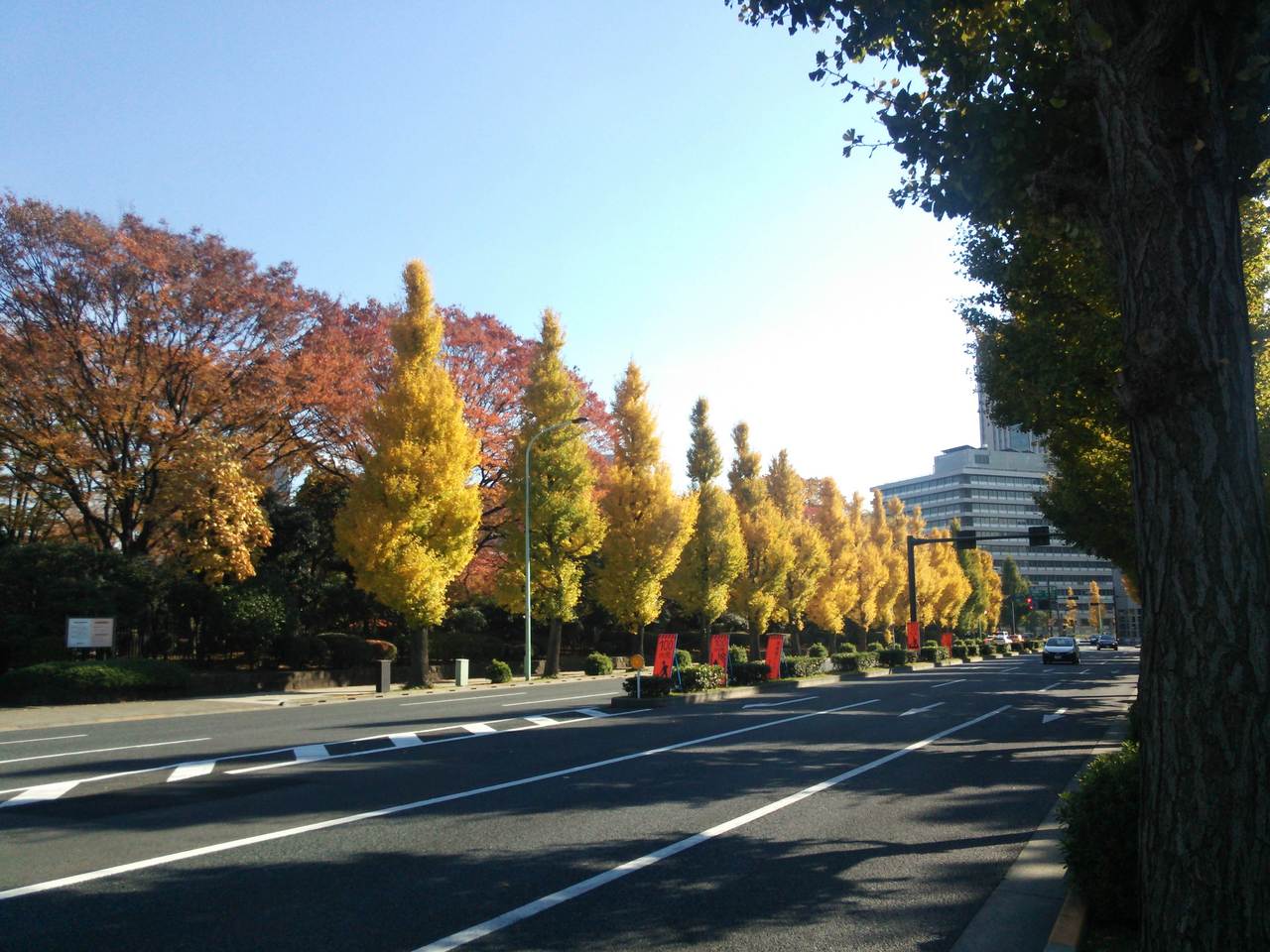 衆議院参議院の正面にのびる道路と、左右の道路には、多くのイチョウの街路樹があります。