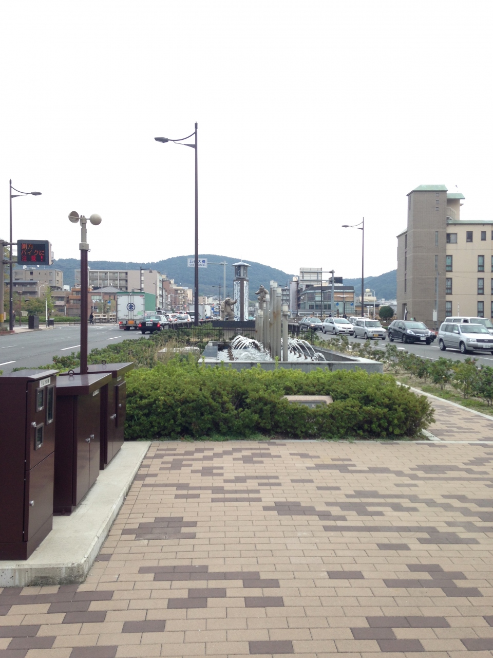 京都駅から徒歩15分程、鴨川にかかる五条大橋にあるモニュメントで、