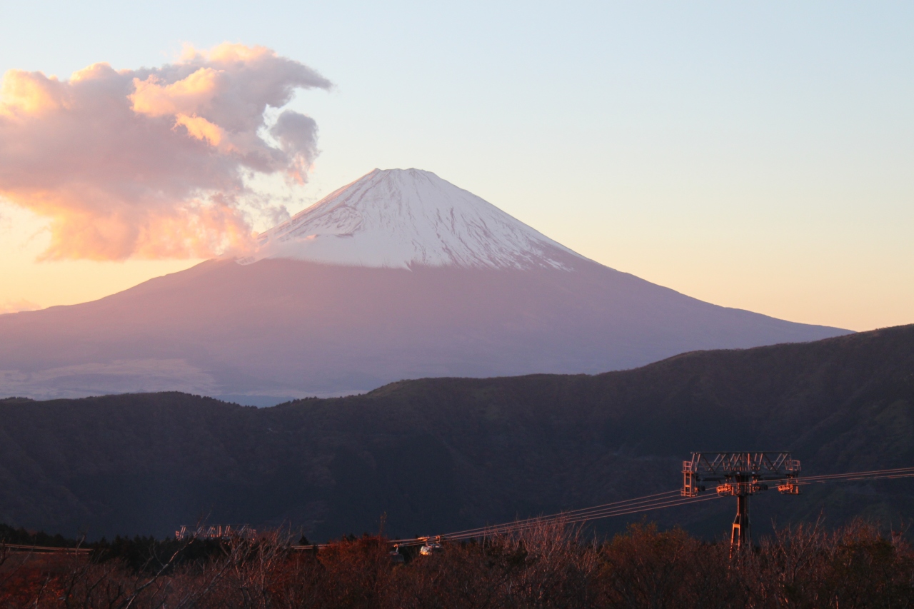天気に恵まれたので、ここからの富士山は素晴らしく、また夕陽の沈む様は感動だった。