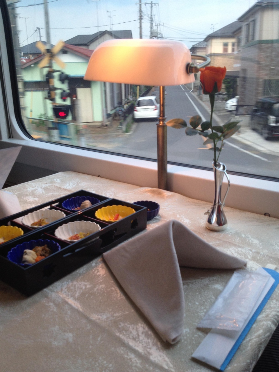 ディナーは、食堂車で窓からの景色を見ながら食べるとなると、早めの時間の方がおすすめです。日が暮れると真っ暗ですから。お昼を軽めにしておく必要ありますが。