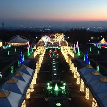 入場してしばらく経つと、徐々に灯りがつきはじめ、5時ころには綺麗なイルミネーションが見られます。