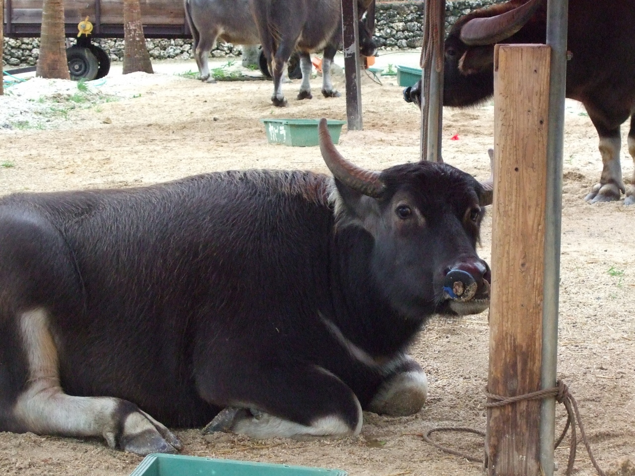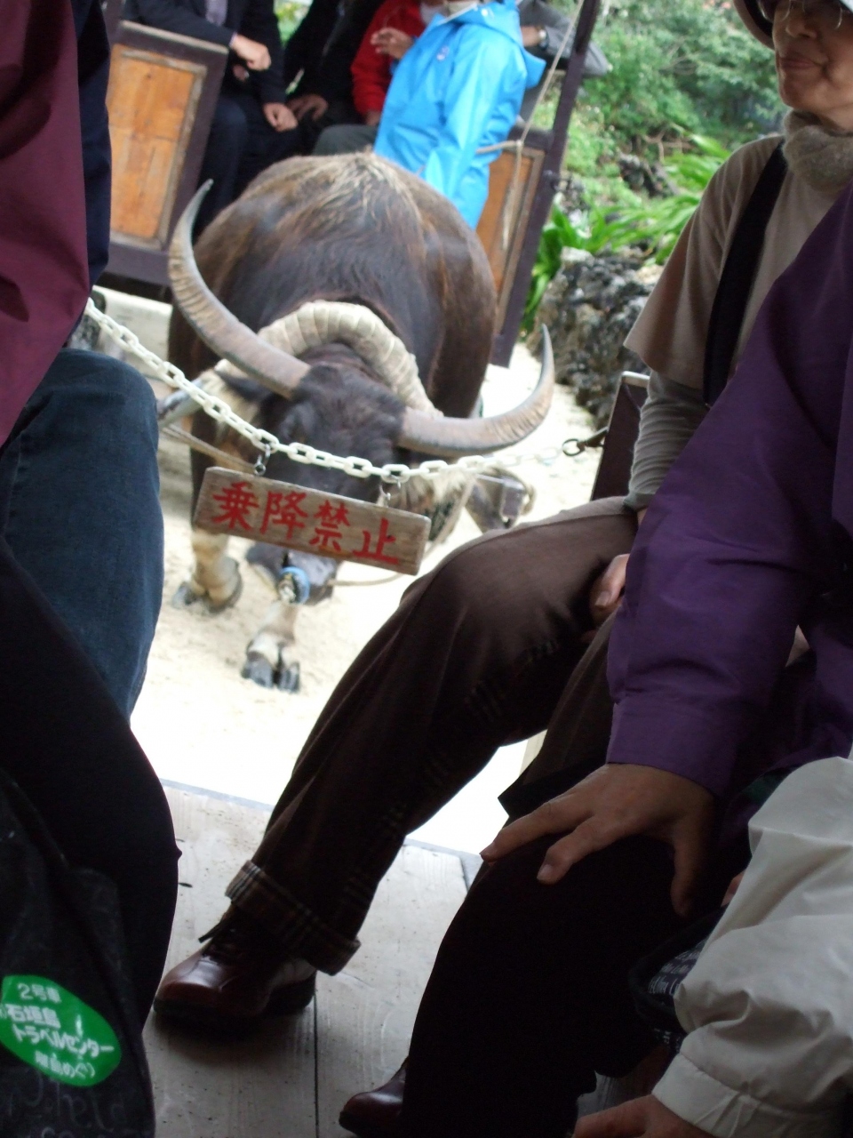 ゆったり水牛のペースに揺られ、三線と歌を聞きつつ、町並みを楽しみます。
