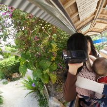 ゆったり水牛のペースに揺られ、おじぃの三線と歌を聞きつつ、町並みを楽しみます。