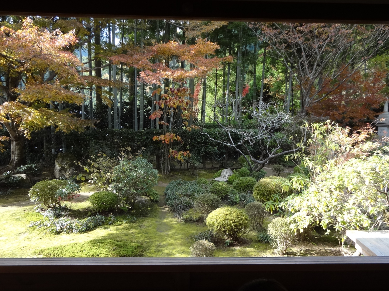 額縁庭園として有名なところです。入園料に抹茶とお菓子の代金が含まれており、これを頂きながら綺麗なお庭を眺めているとホッとします。紅葉も進んでいて楽しむことができます。夕方が一番綺麗らしいので、いつか機会を設けて行ってみたいと思います。