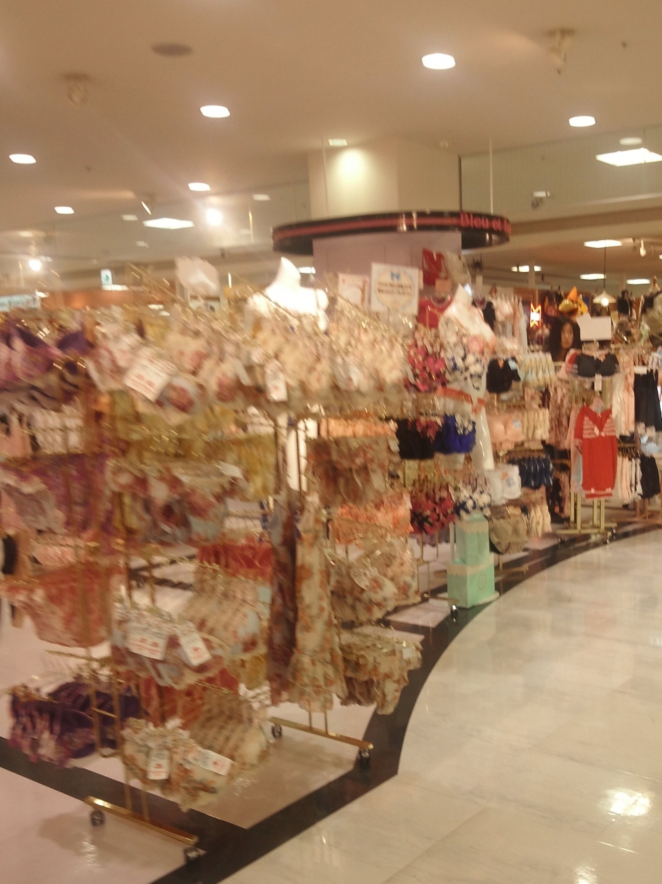 女性の為のランジェリーショップのロリアンミルです。「スウィート&ロマンス」をテーマなんだそうです。幅広く揃っているようでした。値段が安いのか高いのかは判りませんが量はありました。可愛いのものも揃っているようです。