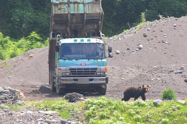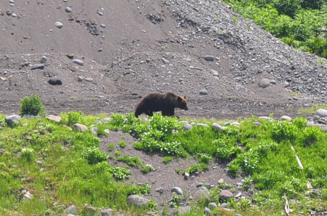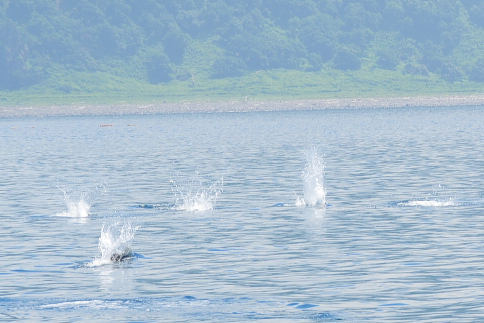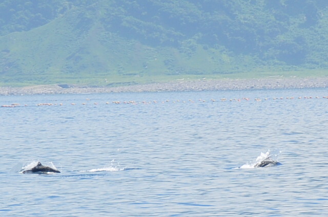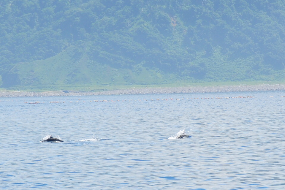 ウトロから観光船「ドルフィン」で知床岬クルーズに参加し、ルシャ湾を通過した時にヒグマ1頭を見ることが出来ました。ヒグマとの距離があるため、写真撮影するには一眼レフのカメラと望遠レンズをお奨めします。iphoneでは黒い点にか写りませんでした。また近くではイルカの群れにも遭遇しました。