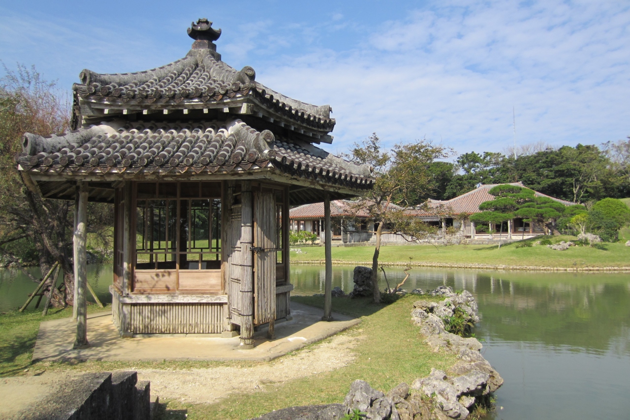 那覇市内から2番のバスで識名園前で降りると、1分かからずに着きます。沖縄戦でほとんど壊滅したため、復元の建物になるのだけが悲しいですが、中の雰囲気は美しいものがあります。入り口から木々の中を歩いて行くと池が見えてきて、六角堂も目に入ります。落ち着いた庭園を味わえます。