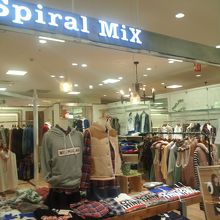 女の子の「今ほしい」を時代に合わせ形にします。こだわりある普通感覚をベースに可愛さとトレンドをMIXさせ、カジュアル・ガーリーなスタイルをご提案するSpiral Mix です。ショップ内は気軽に着れる服が揃っていました。