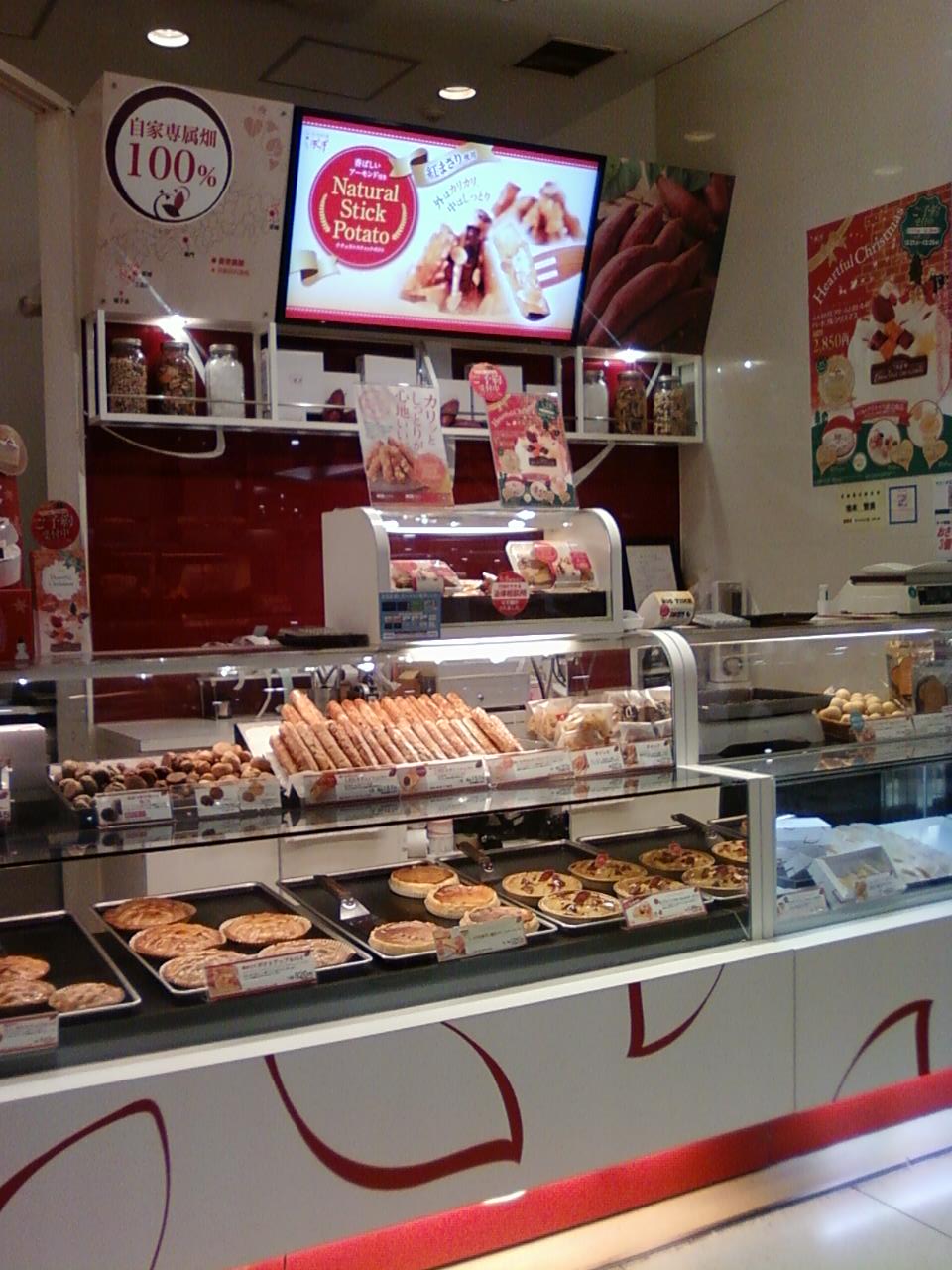 ここのらぽっぽさんは、JR川崎駅に連結しているラゾーナの一階、グラン・フードという食料品フロアにあります。らぽっぽというのは焼き芋屋さんのらっぱの音からきているのでしょうか、さつまいものスイーツが中心です。また、紅玉リンゴを使ったパイなどもおすすめです。