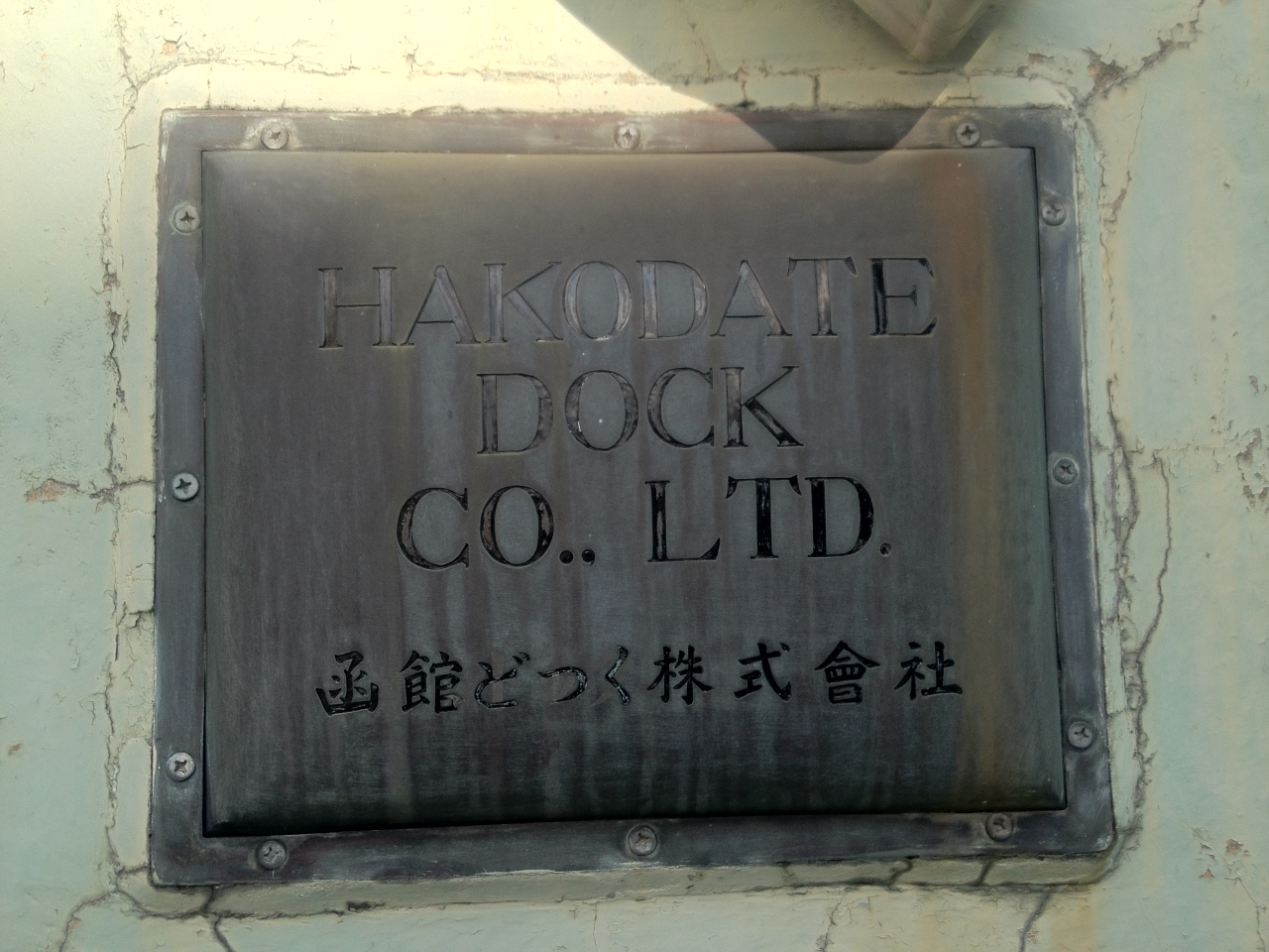 函館の工業は造船でしょ。ということで、函館市電の終点函館どつくで降りて函館どつく造船所の門の前に行くと、これがありました。