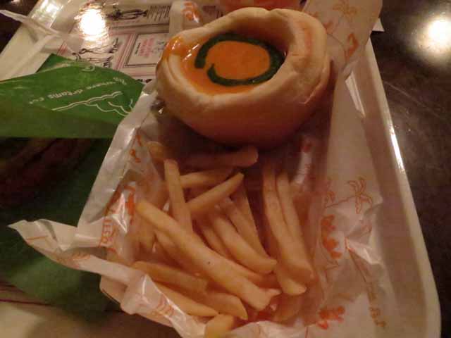 私は寒い日の夜に行ったので、クラムチャウダー入りのパンボウルをセットで頼みました。ドリンクとサイドにフライドポテトがついて990円でした。