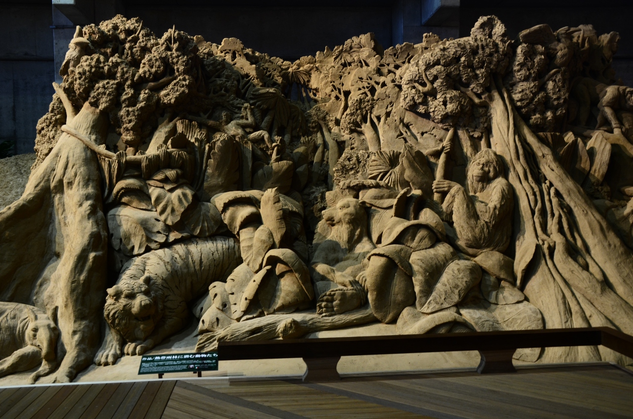 1年ごとにテーマを変え、世界トップレベルの砂像彫刻家による、砂だけで造ったとは思えないほどに繊細で存在感あふれる作品を展示しています。