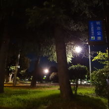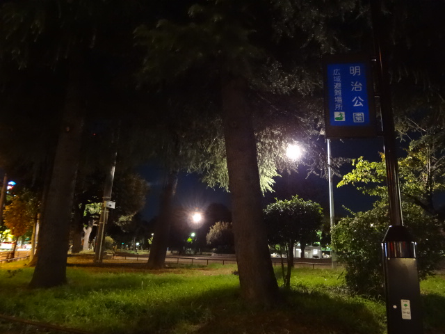オリンピックに合わせて開園した公園で、園内には緑が多く、オブジェなども点在していますが、夜はひっそりとしています。