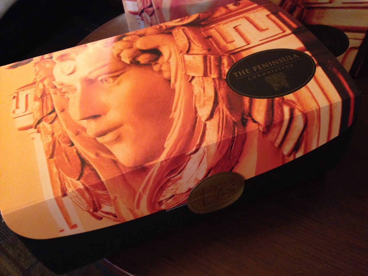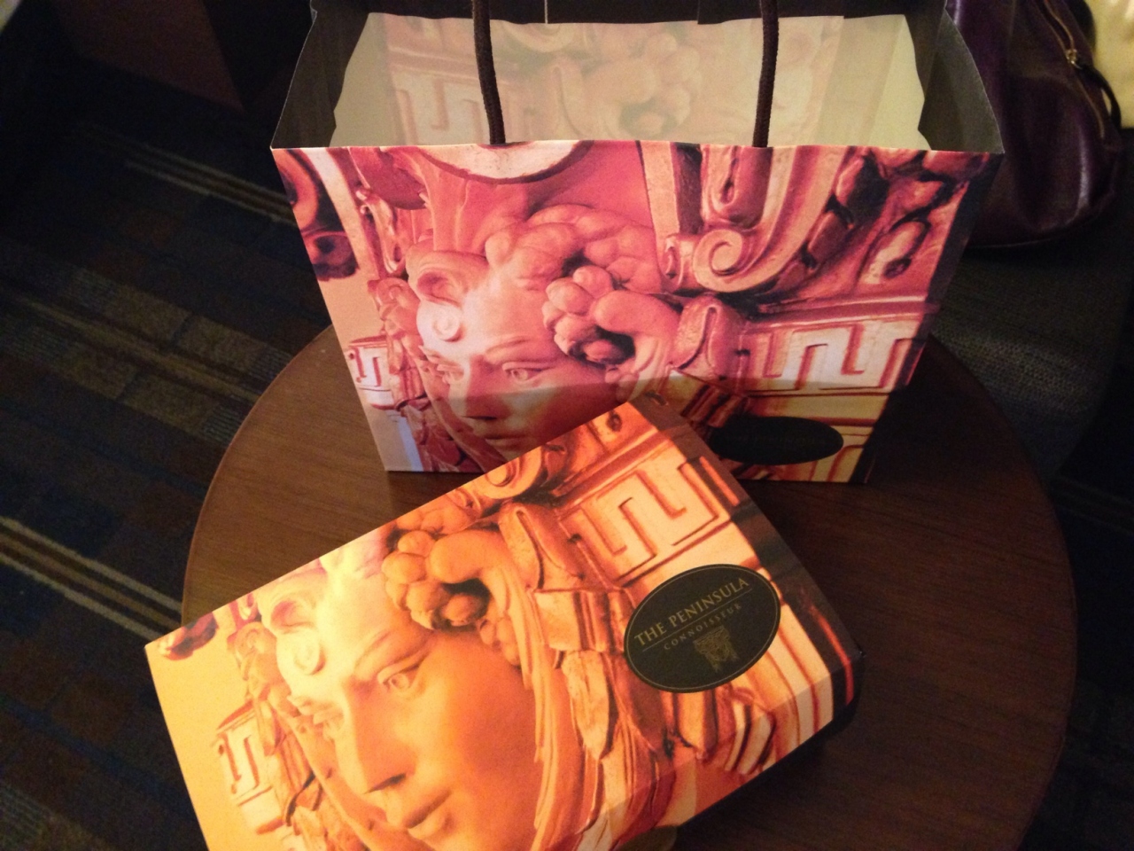 食後のデザートにしようと思い大丸の地下へ。色んなお店のデザートがありましたが、高級感漂うペニンシュラブティックに目が留まりました。ちょうど私たちの前に2組ほどのお客さんがいてチョコレートやケーキを購入していました。