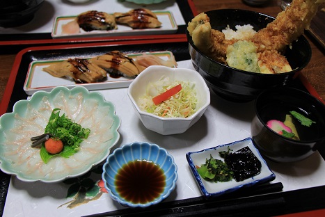アナゴ丼・アナゴのにぎり・アナゴの薄造りとアナゴづくしが食べられます。