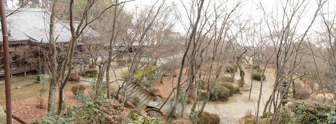春は通称の通りの「花の寺」として、また秋は紅葉の名所として知られているそうですが、私たちが訪れた12月は一輪の花もなく、茶色に変わった落ち葉が残るのみでした。