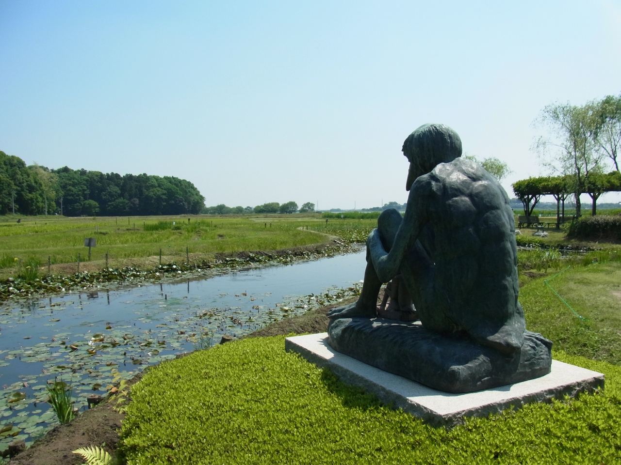 牛久市の三日橋生涯センターの駐車場を出るとすぐに、あやめ畑と複数のかっぱの像が設置された公園があります。沼を広く見渡せられて駐車場があって程よく整地されているので散策するにはもってこいの場所です。かっぱの像は表情が面白く味があります。