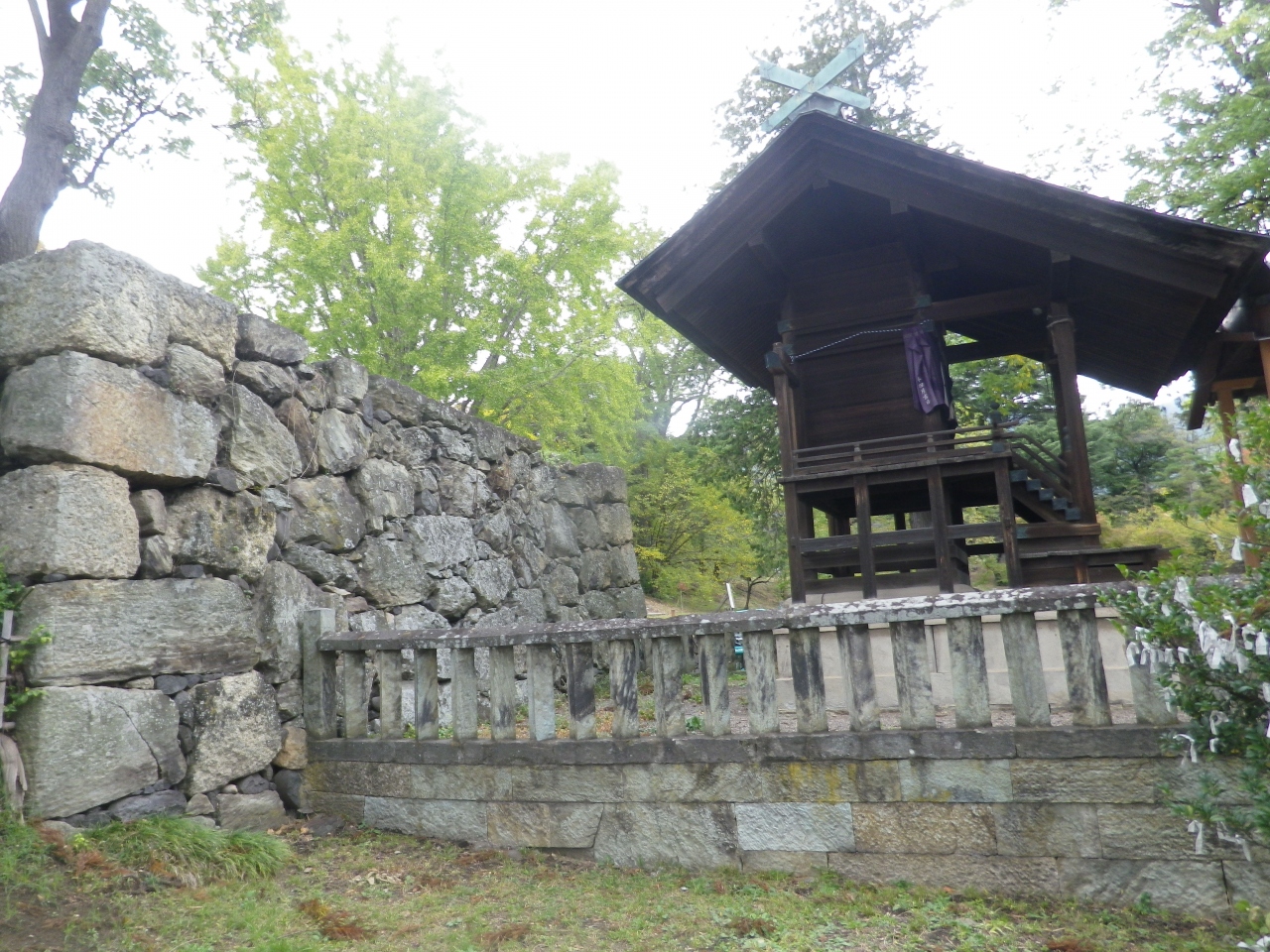 上田城跡公園の北櫓・南櫓・真田石がある東虎口櫓門をくぐると真田神社の参道があり、小さな鳥居をくぐるとすぐ本殿に行けます、参道には大きな兜があります、神社の裏には本丸唯一の井戸、真田井戸が、更に奥には西櫓があり展望が楽しめます