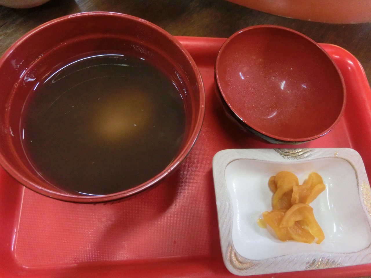 いただいたのはぜんざい(温)ですが、小さいお餅が2個だけの残念なサイズ。