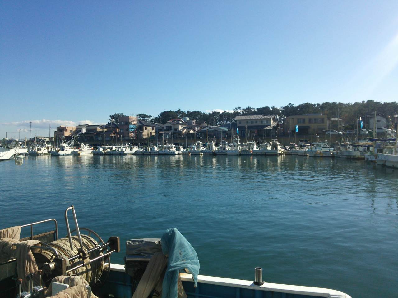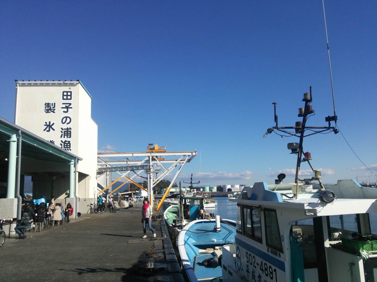 漁船が係留された最高の景色の前で、おいしくいただきました。
