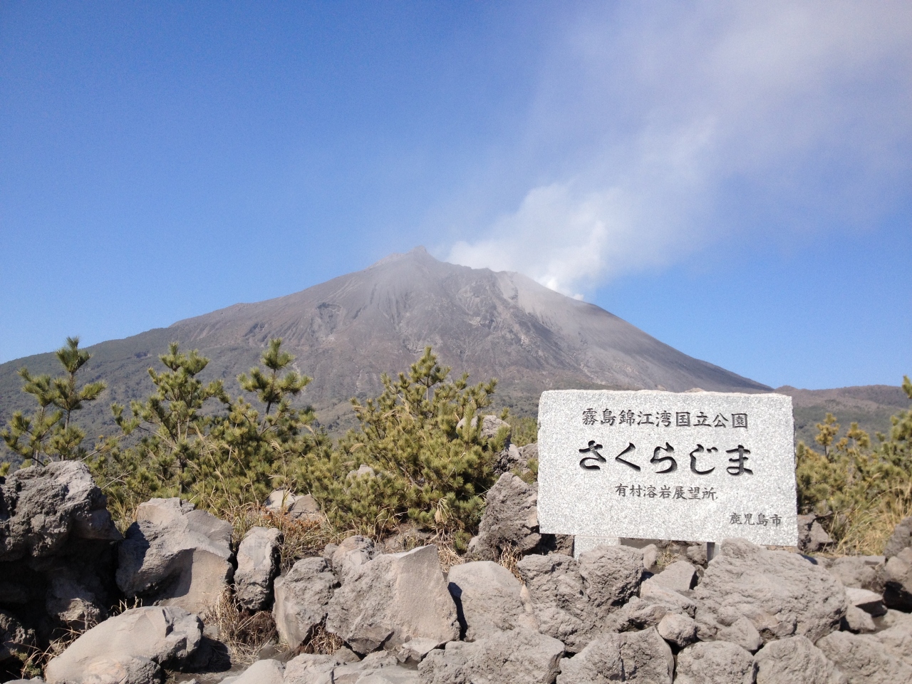 桜島の展望台のひとつです。フェリーターミナルから自転車で行ったところ、1時間20分程度掛かりました。行きは上り坂なため、かなりキツイと思います。また、噴火+季節風の影響で、途中から火山灰が降ってきたため、目を開けられず大変でした。ただし、展望台からの景色は素晴らしく、もくもくと煙の上がる桜島は迫力がありましたよ。