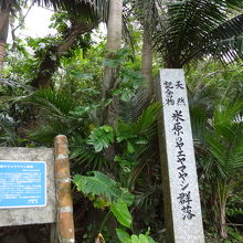 米原ビーチから少し東側に行った、周遊道路沿いに看板があります。入口の手前には、ベンチなども置いてあり、わかりやすいところです。ヤエヤマヤシは天然記念物にも指定されていますので、石垣の自然を味わうのに良いところです。