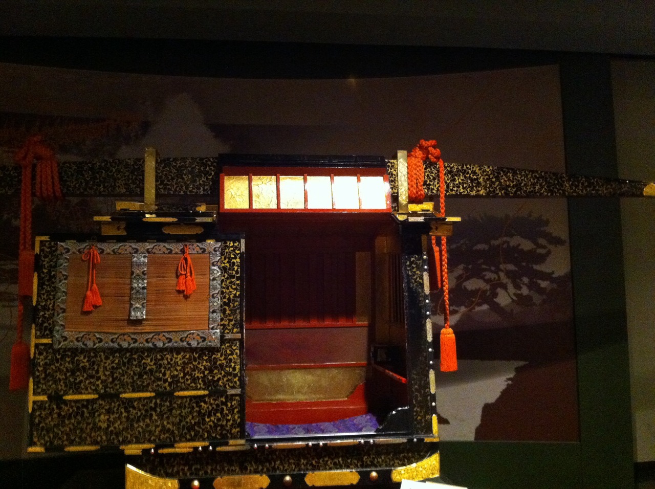お城の中の展示というと、甲冑などの武具や刀それに着物などが一般的かと思いますが、ここは、いろいろ体験が出来るように工夫されていて楽しめました。籠に実際に乗って、中のスイッチを押すとビミョーに動いたり、飛脚と競争が出来たり、お姫様や武将の顔出しパネルがあったりなどなど、、、頑張ってるなぁ~って感じました。