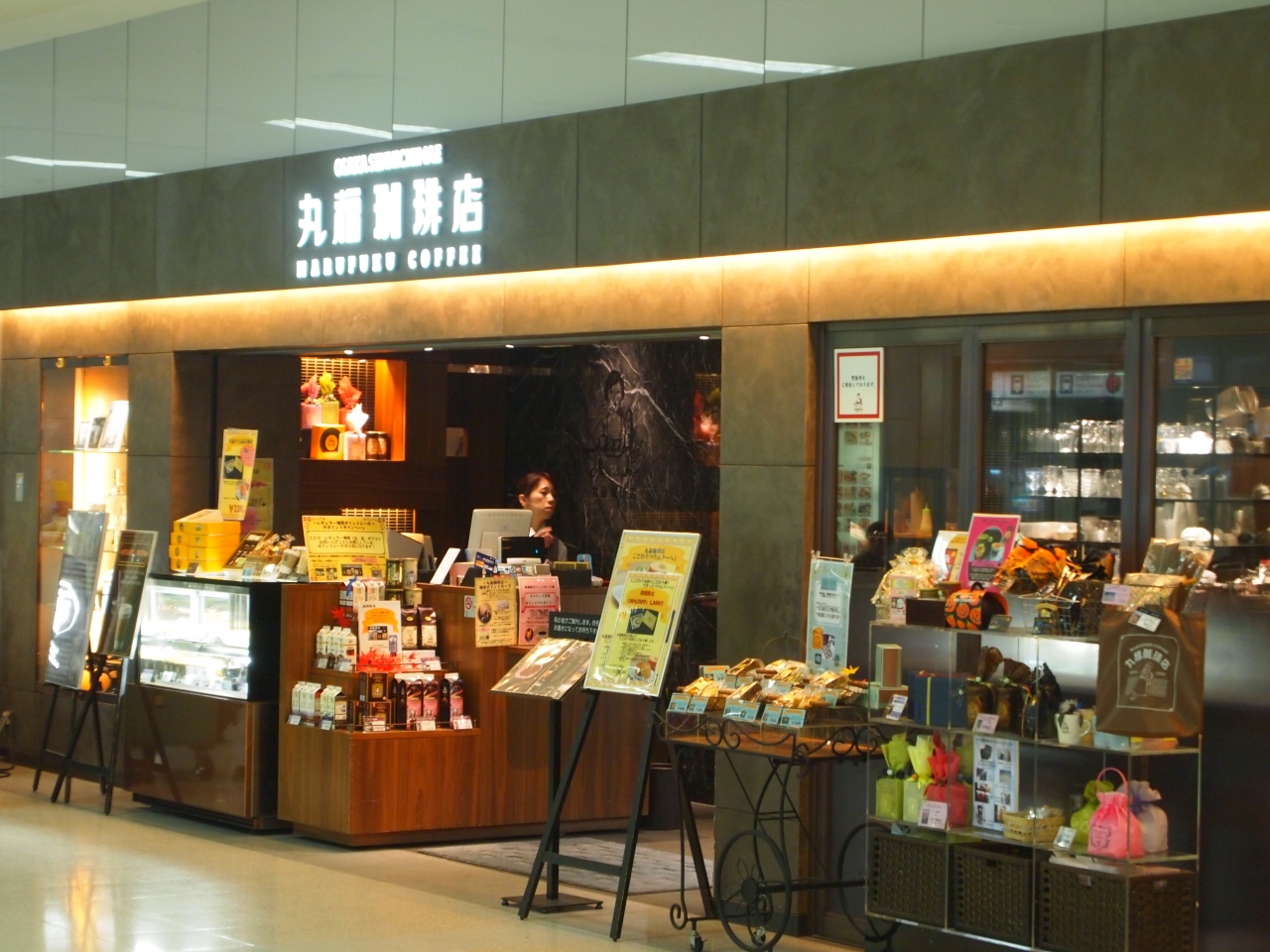 丸福珈琲店は第1ターミナルの1階到着ロビーにあります。