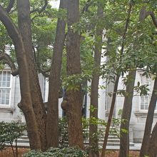 横浜開港の際に、ペリーが上陸したときのことを、ハイネがペリー提督横浜上陸図として描いています。この絵の右側に描かれている木がタマクスの木です。関東大震災や第二次世界大戦の際には、焼けたりしましたが、根元から再生してきて、現在、開港資料館の中庭にあります。