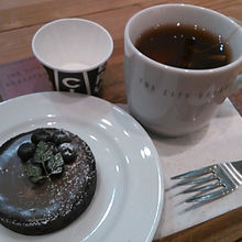 混んでもなくすぐにはいれた。テイクアウトの方をのぞいてみるとパンはもうほとんどない状態。甘いものが食べたかったのでタルトにしました。