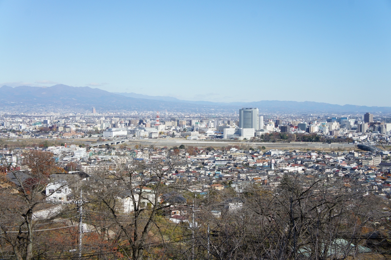 高崎観音山公園。頂上に駐車場があって、そこから高崎市街がはるかに見渡せるのですが、その市街の向こうには、さらには赤城山や榛名山も見えてとってもいい眺めです。