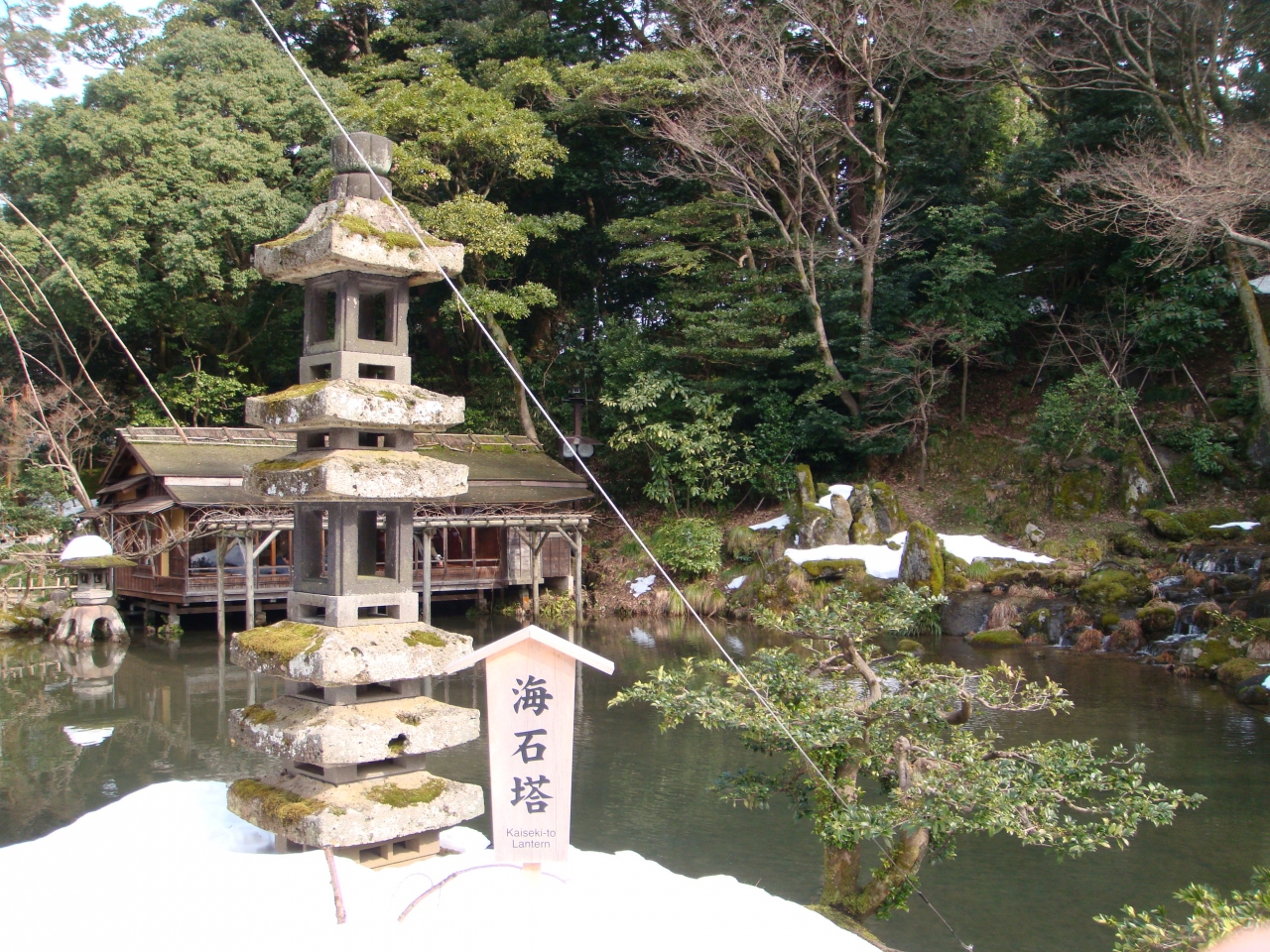 中島に建つ、六重に重ねられた塔が「海石塔」です。