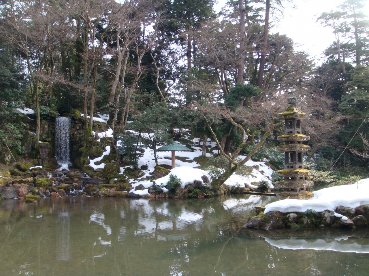 兼六園内で最も古い時代に作庭されたと言われる瓢池、池の中には大小二つの島があります。