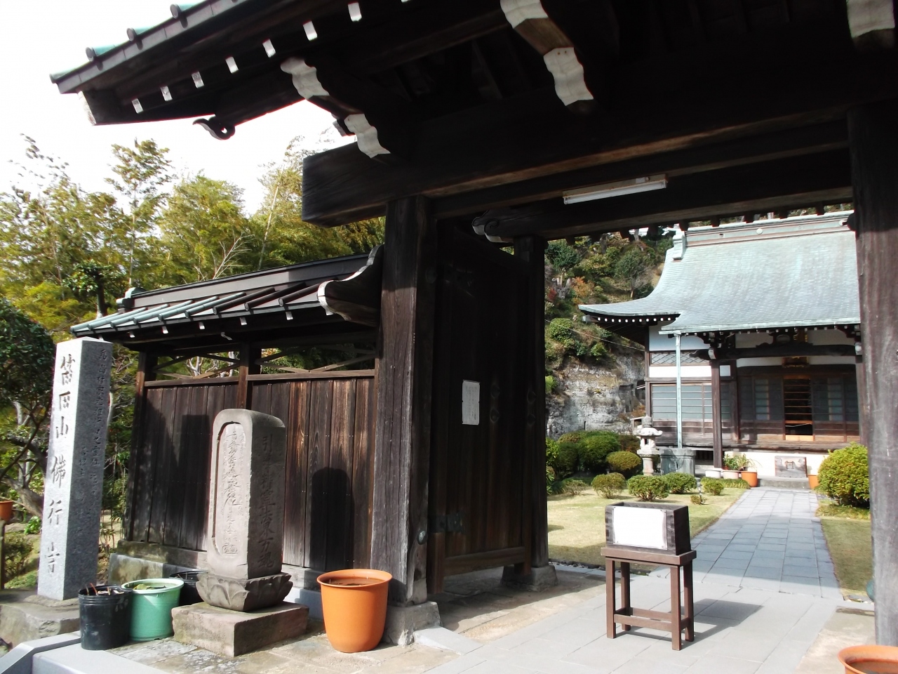 笛田山 佛行寺。妙本寺末寺・明応4年(1495)創建とあります。梶原源太景季所縁の地で伝説のあるお寺です(裏山頂部に源太塚あり、近くに妻の信夫塚碑もある)。