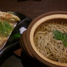鴨つみれはとても珍しく、美味しかった。鴨つみれはかぼちゃやサツマイモの天ぷらと盛り合わせでしたが、ちくわ磯部天は、それのみ。こっちも盛り合わせだったらよかったな。そばは土鍋で出て来ました。