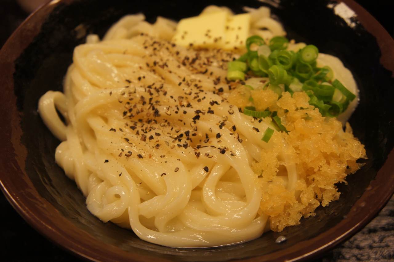 で、いただいたうどんは、お店の一押しという釜揚げバター。バターの風味に、掛かったこしょうがいい組み合わせです。それで、最大の特徴は、麺のやわらかさ。ご飯で言ったら、お粥さんということでしょう。ちょっと、新境地かもしれません。
