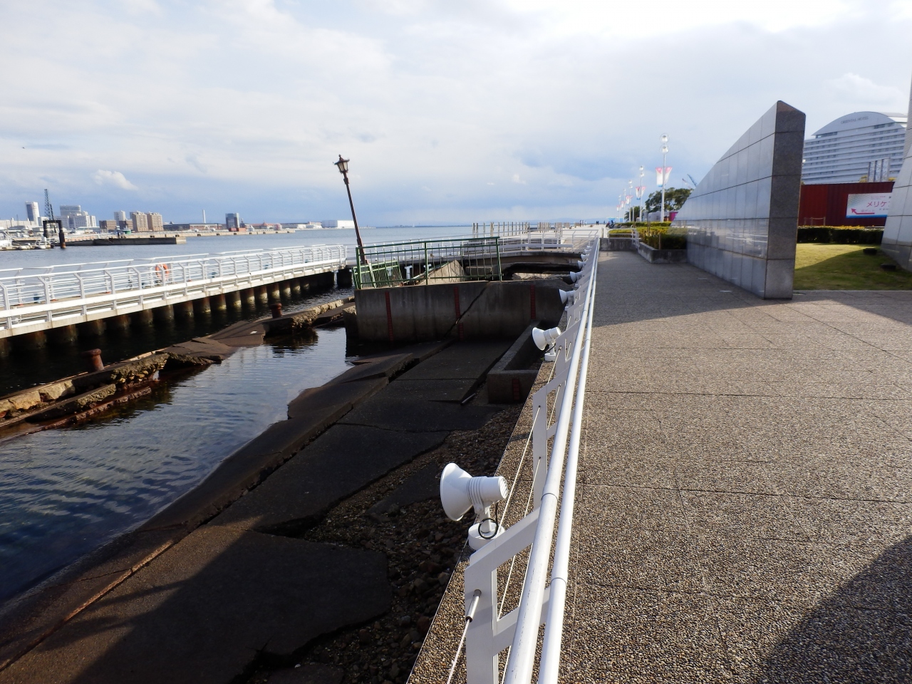 阪神淡路大震災によって、ここメリケン波止場の岸壁が破壊,沈下するなどの被害に見舞われたそのときの状態が保存されている、波止場は広場になっておりイベントの無い時は閑散としている、潮風に吹かれていると恐ろしい震災が嘘のようだ
