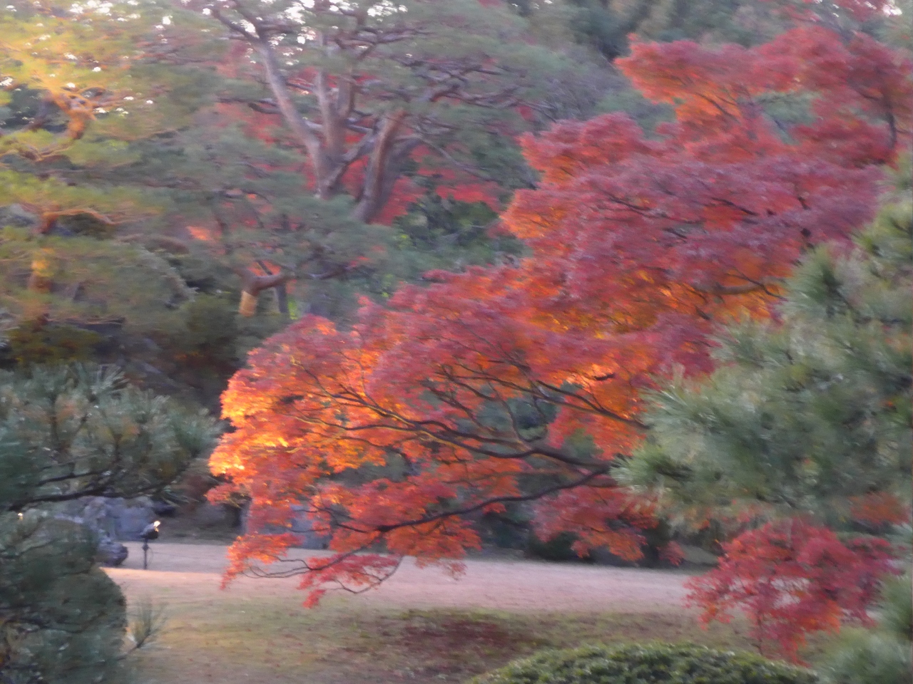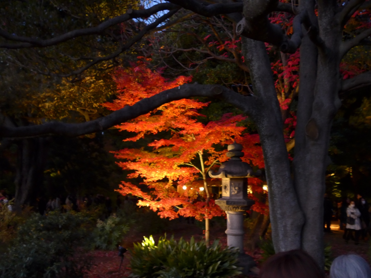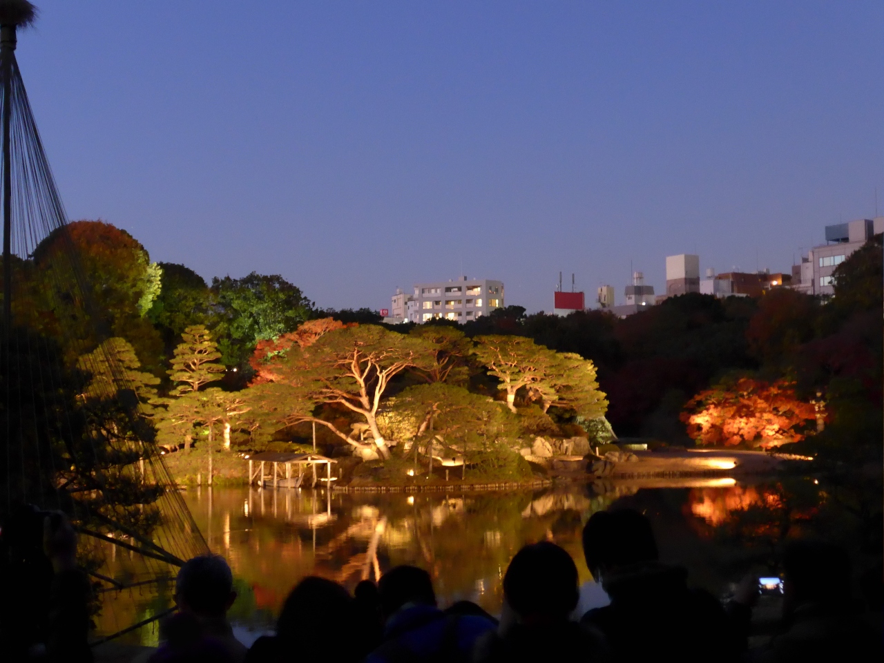 JR山手線の駒込駅を出てすぐにある六義園は紅葉の秋にはライトアップ演出をしてあり