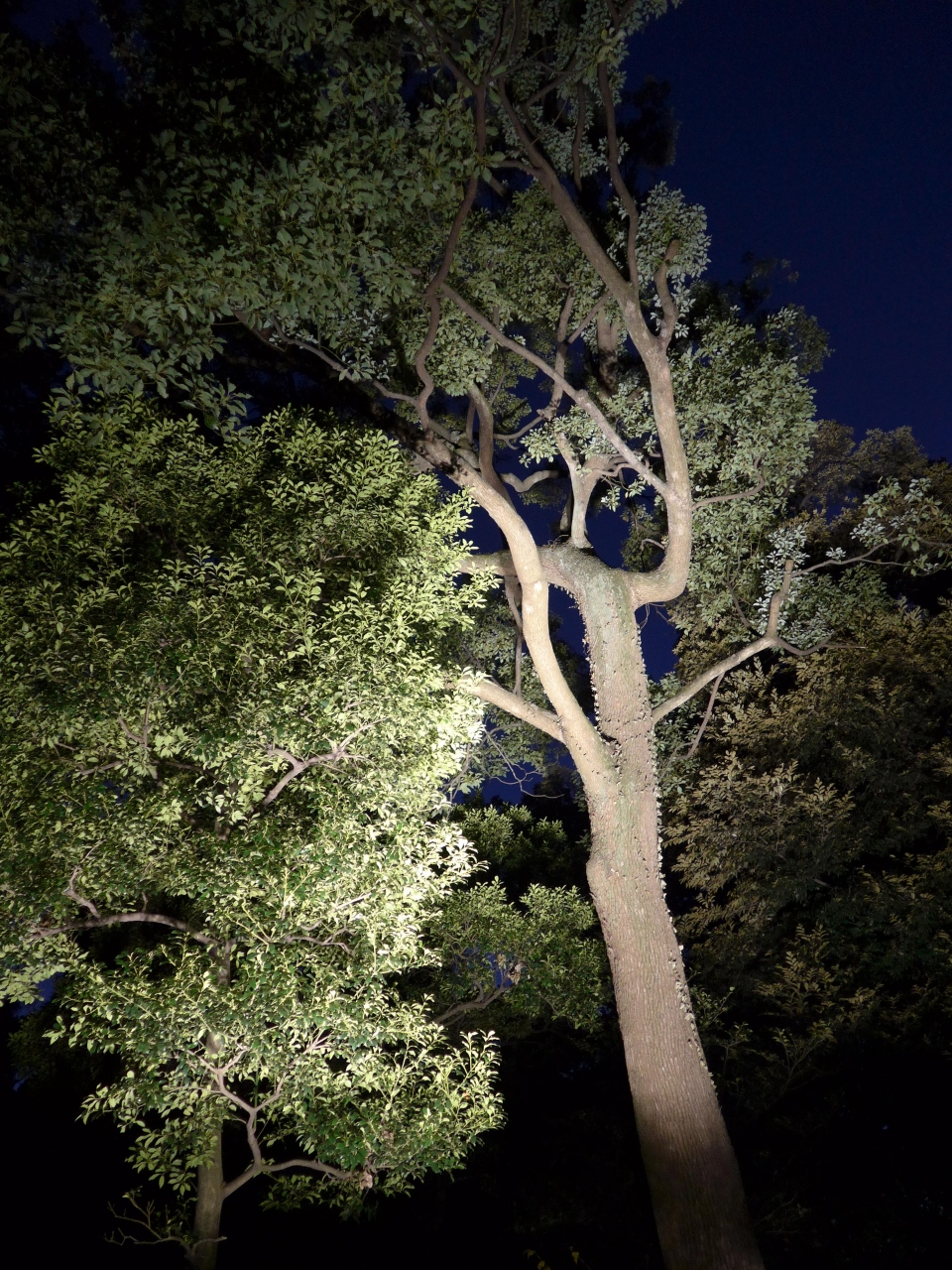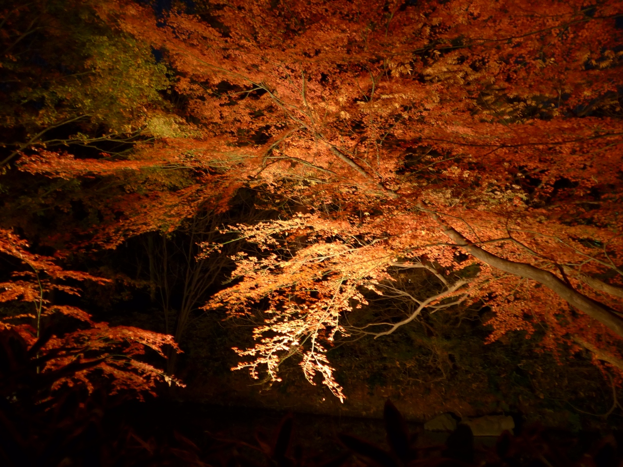 園内の紅葉した木々を中心にライトアップされ見応えがあります。中でもいけな映るライトアップした紅葉の木々はより彩をアップします。