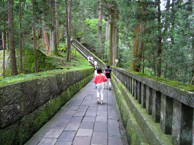 東照宮の主祭神である家康の墓所がこの奥社。有名な眠り猫をくぐると、綺麗な石垣の道を進みます。