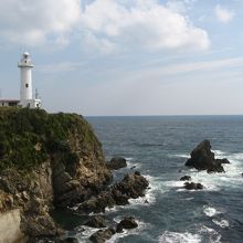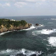 「大王崎」は、志摩半島南東端の岬で、太平洋に突出する海食崖の先端に大王埼灯台が立つています。沖には立島、大王島などの岩礁があり、断崖にくだける黒潮のしぶきの壮観な光景は志摩第一といわれています。灯台までは駐車場から坂道を少し歩きますが、道沿いにはお土産や海産物を売る店が並びなかなか風情があります。