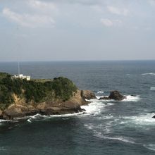 「大王崎灯台」は、志摩半島南東端の、太平洋に突出する大王崎の先端に立つています。沖には立島、大王島などの岩礁があり、断崖にくだける黒潮のしぶきの壮観な光景は志摩第一といわれています。灯台までは駐車場から坂道を少し歩きますが、道沿いにはパールや干物、わかめなどのお土産屋店が並びなかなか風情があります。灯台の螺旋階段を登り、最上階の見張り台からは360度の大パノラマが楽しめます。灯台への入場料は大人200円です。