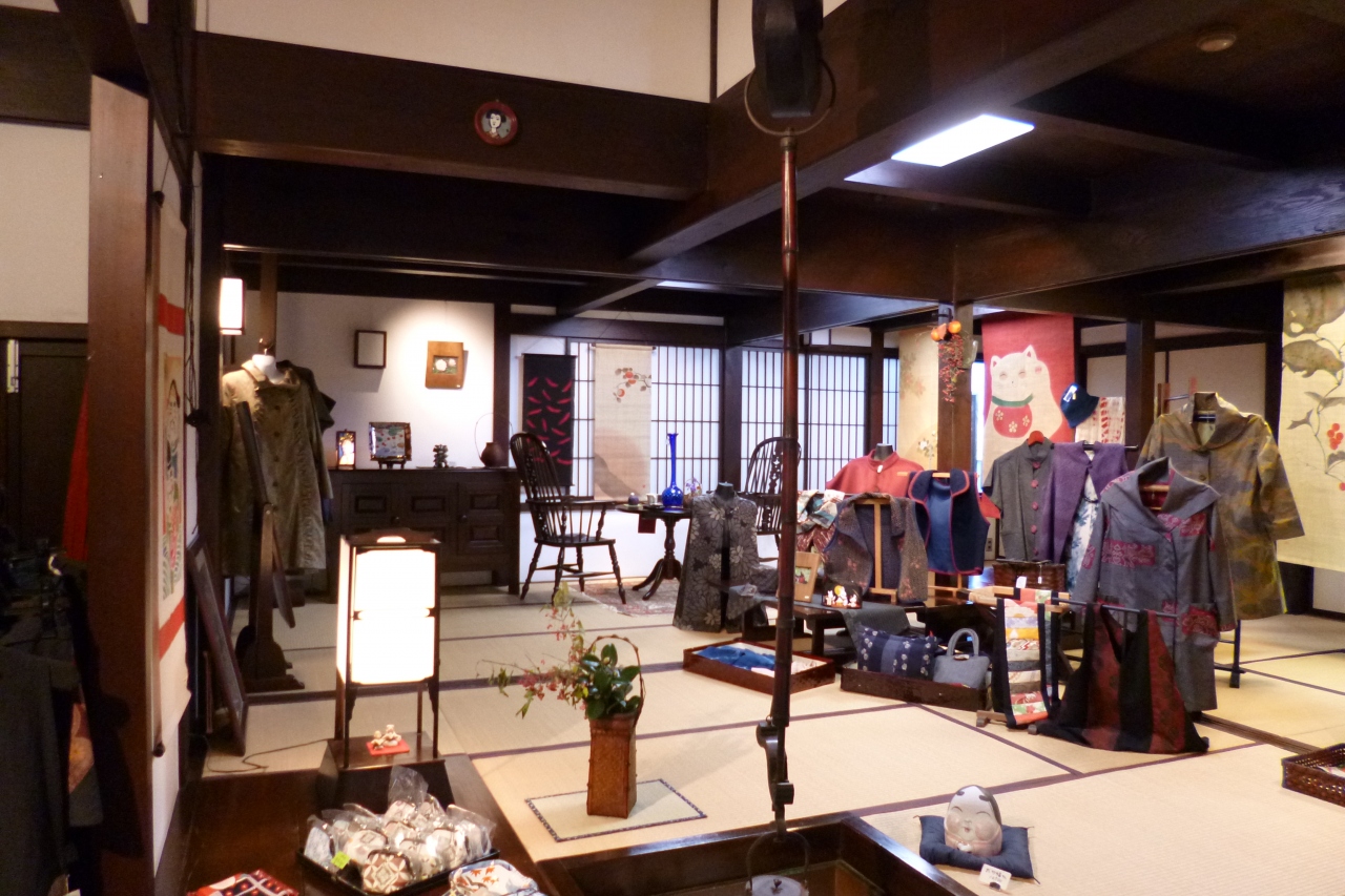 お店の右側がお食事茶房で、左側に和雑貨などの販売、奥は和の衣服やのれんなどが展示されていました。