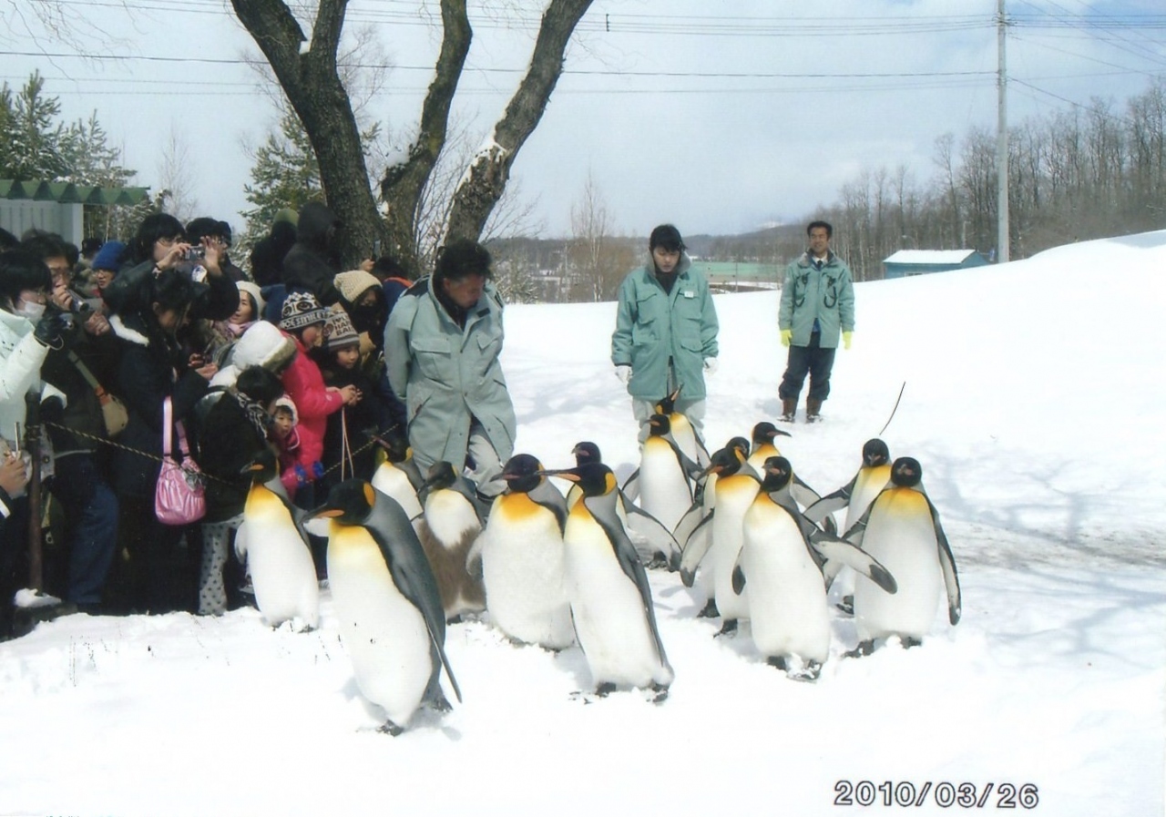 冬の寒さでは動物も動くのが億劫、ペンギンのお散歩が一番