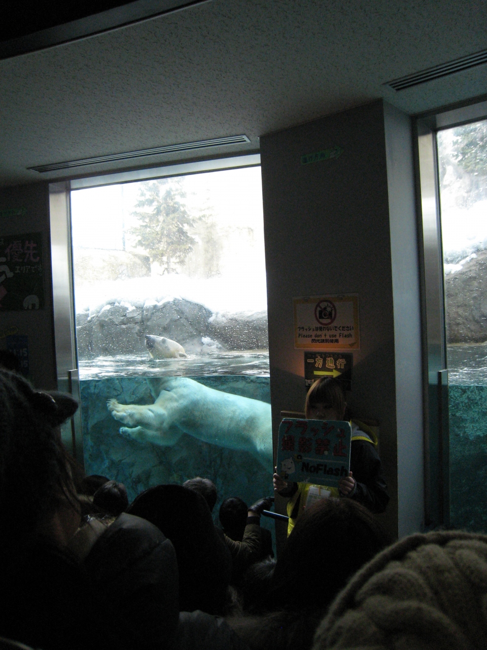 旭山動物園では、テレビ番組でおなじみの動物たちが,間近で見られると意気込んでいたのですが、この寒さの中、動物たちは、観光客などおかまいなく、自分たち本来の行動です。