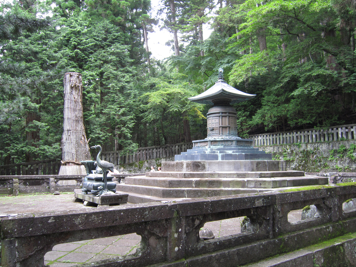 東照宮の主祭神である家康の墓所がこの奥社。有名な眠り猫をくぐると、綺麗な石垣の道を進みます。東照宮本殿のきらびやかな装飾とは対照的に、静かでひっそりとした場所です。