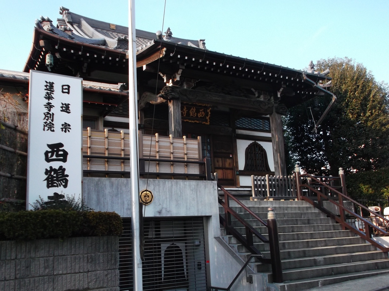 大和市西鶴間8丁目にある日蓮宗の本堂庫裡のみのお寺です。隣裏手が大きい大和斎場、関係はわかりません。