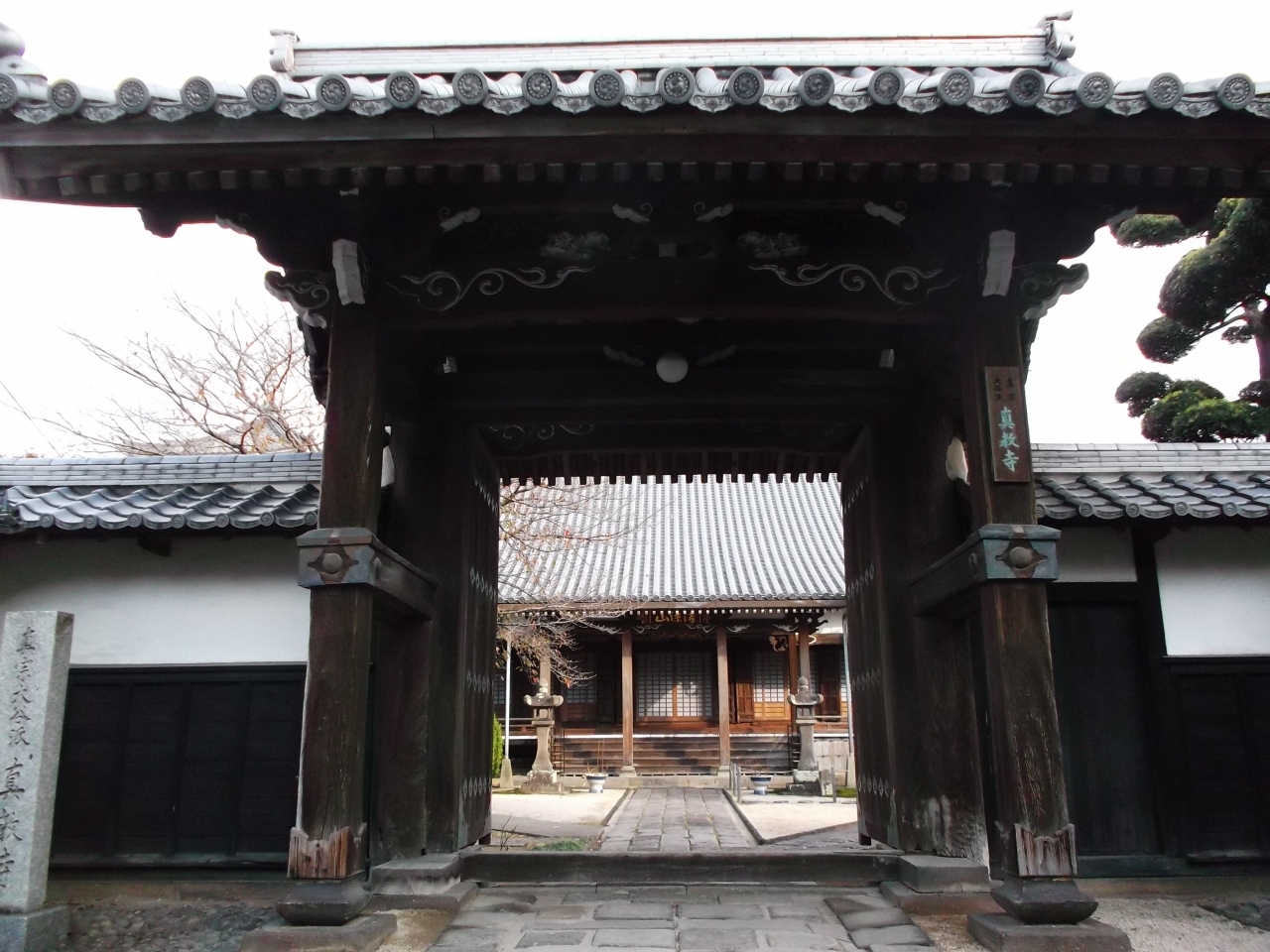 久留米の寺町地区の南方にある・通りから鐘楼が見えるお寺。真宗大谷派真教寺と刻んだ石柱が山門前にあります。延徳3年(1491)創建とあり、柳川藩主田中吉政公の菩提寺と記録があります。本堂は寛政3年(1791)再建で中の格天井には狩野永就筆花鳥画があることで知られています。裏手は広い墓地が広がりご当地ゆかりの教育者・名士が眠っています。境内には納骨堂が新しくありました。